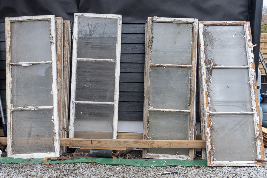 Växthuset är byggt mot fasaden. Det är ca 4 meter, varav halva har fullhöjd på ungefär 2 meter och andra halvan har hyllplan med 50 cm mellanrum.